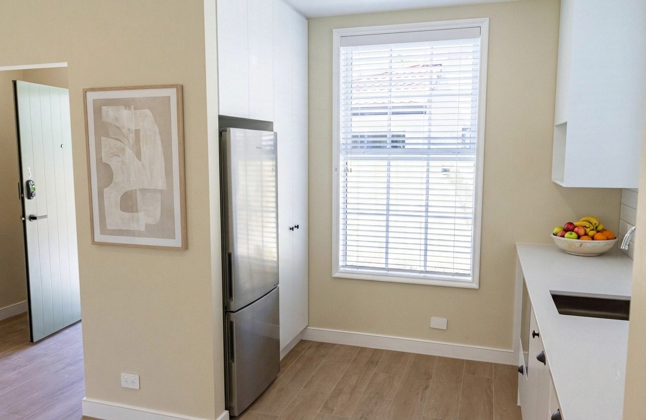 Perfect for tenants seeking a high-quality residence with excellent amenities, this property features a smart two-level layout. The ground floor features open-plan living and dining that flows through French doors to a west-facing terrace — ideal for relaxing in the afternoon sun. You’ll also find a guest toilet and a cleverly concealed laundry on this level. Upstairs are two generous double bedrooms alongside a stylish tiled bathroom.